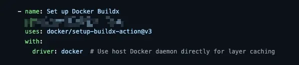 No special cache configuration is needed. Because the runner is using the host Docker daemon via the mounted socket, BuildKit automatically uses the local layer cache. This is the simplest and most effective caching approach — no remote cache backends, no registry-based caching, no actions/cache setup.